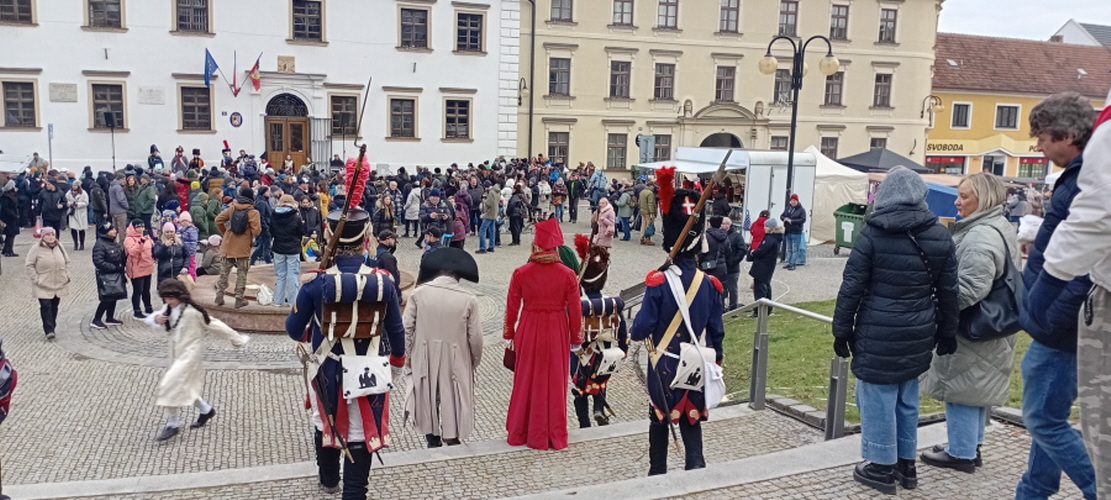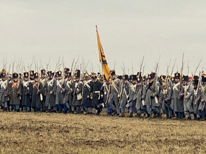 Schloss Austerlitz, Santon, Reenactment in Kostümen, Friedensdenkmal